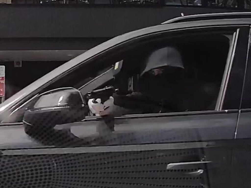 【本報悉尼訊】新州警方周三公佈錄像截圖,追緝一名穿著連帽衫和戴手套的蒙面槍手,他今年2月光天化日之下從一輛奧迪運動休旅車(Audi SUV)上向三名黑幫人物開槍。