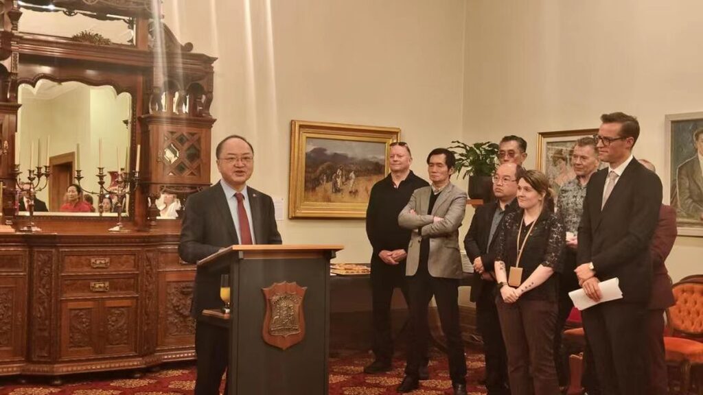 【本報霍巴特訊】10月1日,中國駐墨爾本總領事館房新文總領事於週三(10月1日)出席領區塔斯馬尼亞州首府霍巴特市政府舉辦的慶祝中華人民共和國成立76週年暨中澳建交53週年酒會。波塞爾特Ryan Posselt市議員代表 Lord Mayor Anna Reynolds雷諾茲市長等多位市議員,當地政、商、僑、文、宗教及友好組織等各屆人士近百人出席。活動前在市政廳門前舉行了升旗儀式。