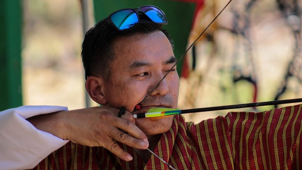 【本報柏斯訊】在柏斯東南部一片看似荒蕪的灌木叢中,數十名身著鮮豔長袍的不丹弓箭手正對著乾草射箭。