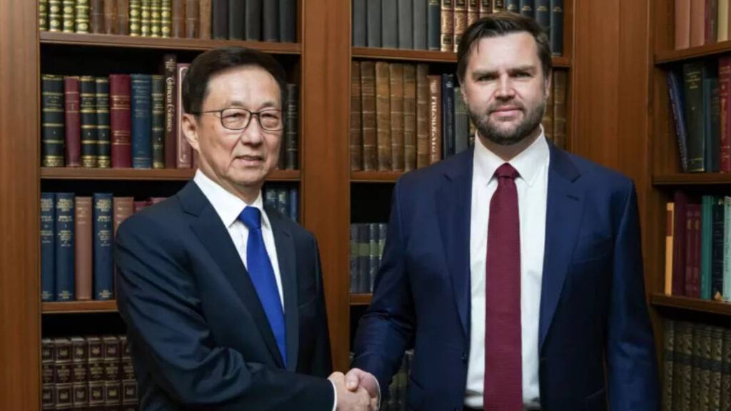 特朗普就職典禮前 萬斯與韓正會面未分類 20/01/2025, 14:38By Jianzhong Pang 美國候任副總統萬斯在宣誓就職前一天與代表習近平出席就職典禮的中國國家副主席韓正會面。(網上圖片)【本報訊】 路透社20日報導,中國國家副主席韓正19日與美國候任副總統萬斯(J.D.Vance)在美國會面,2人討論了一系列議題,包括芬太尼、貿易平衡和區域穩定。美國候任總統特朗普(Donald Trump)及候任副總統萬斯將於美東時間20日宣誓就職。特朗普邀請中國國家主席習近平出席就職典禮,而習近平派出韓正作為其特別代表出席典禮。據特朗普及范斯的過渡團隊在聲明中表示,萬斯和韓正討論了一系列話題,包括芬太尼、平衡貿易和區域穩定。分享 / Share :分享WhatsAppViberTelegramTwitterLinkedinFacebookEmailPrintCopy URL Breaking News聯邦政府多元文化事務部長Anne Aly發表農曆新年賀詞 17/02/2026, 07:38 中國警方調查組赴布市搜集證據 準備起訴潑滾燙咖啡傷男嬰疑犯 16/02/2026, 15:07 邦迪海灘恐襲疑犯首次出庭 法官續禁披露部份受害者身份 16/02/2026, 12:51 核潛艇維修建造設施耗550億 總理為龐大基建投資辯護 16/02/2026, 10:16 受到中國買家拖延談判打壓 BHP主要鐵礦出口暴跌80% 16/02/2026, 09:34 Related news 未分類中國人形機器人 大學與國企成大買家 16/02/2026, 15:40 未分類車仔4球擊敗侯城闖英足盃第5圈 14/02/2026, 12:01 未分類關鍵礦產公司獲7500萬元資助 將年產一萬噸高純度氧化鋁 29/01/2026, 16:32 未分類陳美齡笑言想寫歌玩跳唱 農曆新年仍將在日本工作 28/01/2026, 08:13