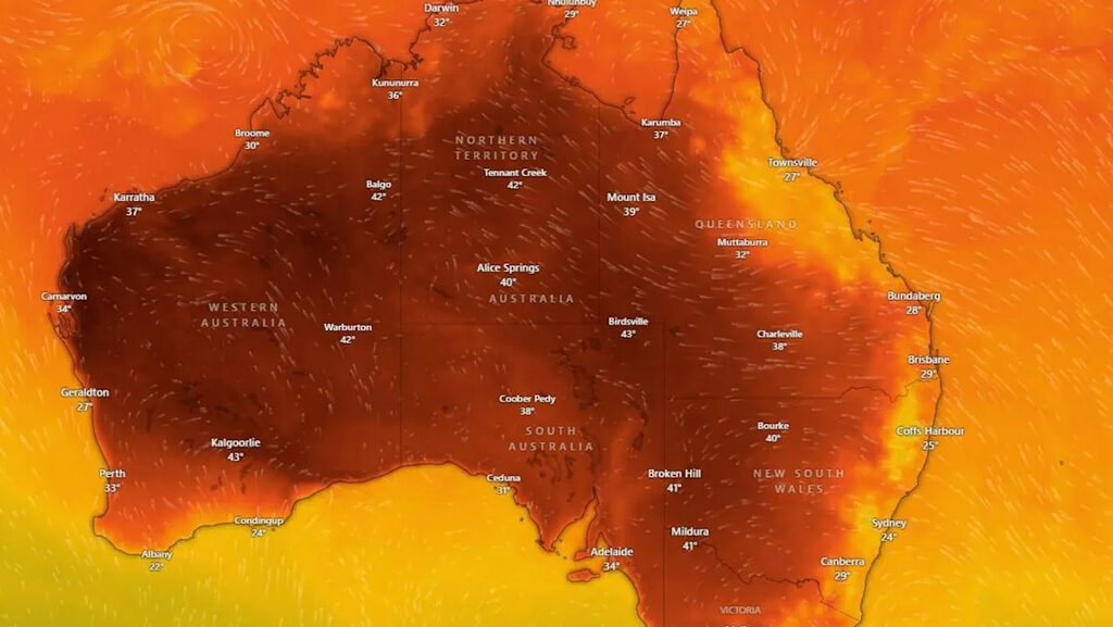 新州、昆州、北領地和西澳部分地區已發布熱浪預警,其中金伯利Kimberley、皮爾巴拉Pilbara和北部內陸地區發布了極端高溫預警。