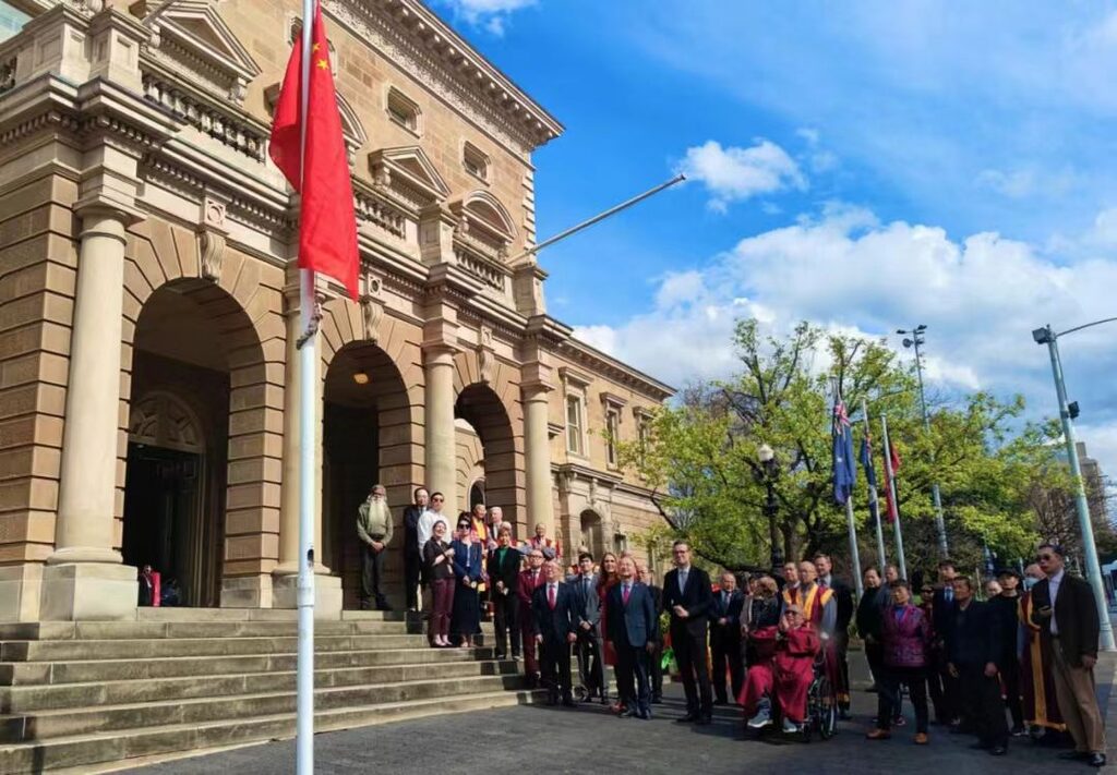 【本報霍巴特訊】10月1日,中國駐墨爾本總領事館房新文總領事於週三(10月1日)出席領區塔斯馬尼亞州首府霍巴特市政府舉辦的慶祝中華人民共和國成立76週年暨中澳建交53週年酒會。波塞爾特Ryan Posselt市議員代表 Lord Mayor Anna Reynolds雷諾茲市長等多位市議員,當地政、商、僑、文、宗教及友好組織等各屆人士近百人出席。活動前在市政廳門前舉行了升旗儀式。
