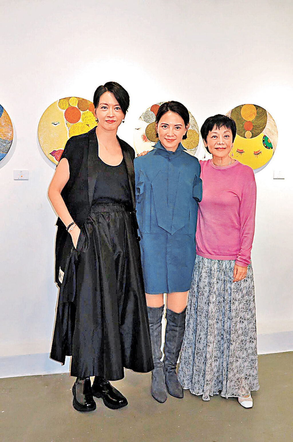 今次展出《糖不甩》圓形畫作系列約20幅作品,以香港地道小吃為靈感。心潔透露花五年完成創作,並曾於台灣舉辦兩次畫展,今次算是達成願望回港開畫展:「今次以香港人好熟悉又親切的糖不甩做主題,它圓形似小朋友的臉龐,上面的糖粉一直黏着,就似永存心中的童真,另外一幅砵仔糕就似我個仔細個咬着奶嘴般。」心潔透露,她的一對九歲孖仔今次也有兩幅作品展出,屬不同畫風,大仔比較古靈精怪,性格似她,樣子似爸爸,細仔則剛好相反。心潔直言創作靈感多來自兩個兒子,老公彭順則給予最大支持,「我畫畫時他會幫手湊仔,讓我專心創作。」而5日老公已提前觀展,6日開幕禮因忙於拍攝彭氏兄弟相隔12年後再合作的新片《拾荒法師2》,未能出席,心潔透露晚會去探班。問她會否也參與演出?心潔表示自己都很忙,即將要赴台灣工作,之後便開拍自己監製兼編劇的馬來西亞電影《黑潮》,並提前為老公慶生。心潔指之前監製的《富都青年》成績理想,她希望多發掘些新導演去拍戲,自己雖然仍熱愛演戲,但若同時兼顧幕前及幕後會相當吃力,所以會分開來做。談及好友張艾嘉和梁詠琪齊來撐場,心潔表示大家不時會約食飯,也希望將來有機會再合體拍戲。分享 / Share :